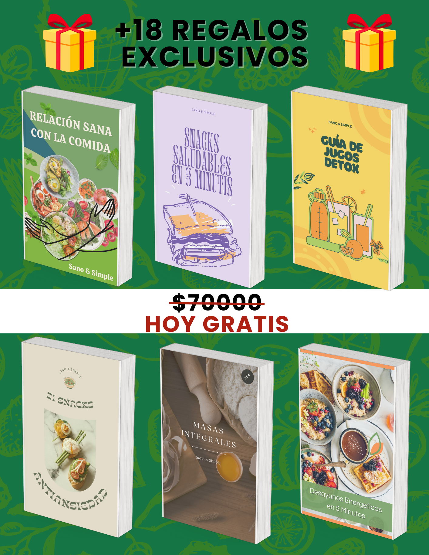 Sano & Simple – 100 Recetas Saludables + 19 Bonos extra+ Pack emprendedor; Tu guía práctica para comer rico, sano y sin complicaciones