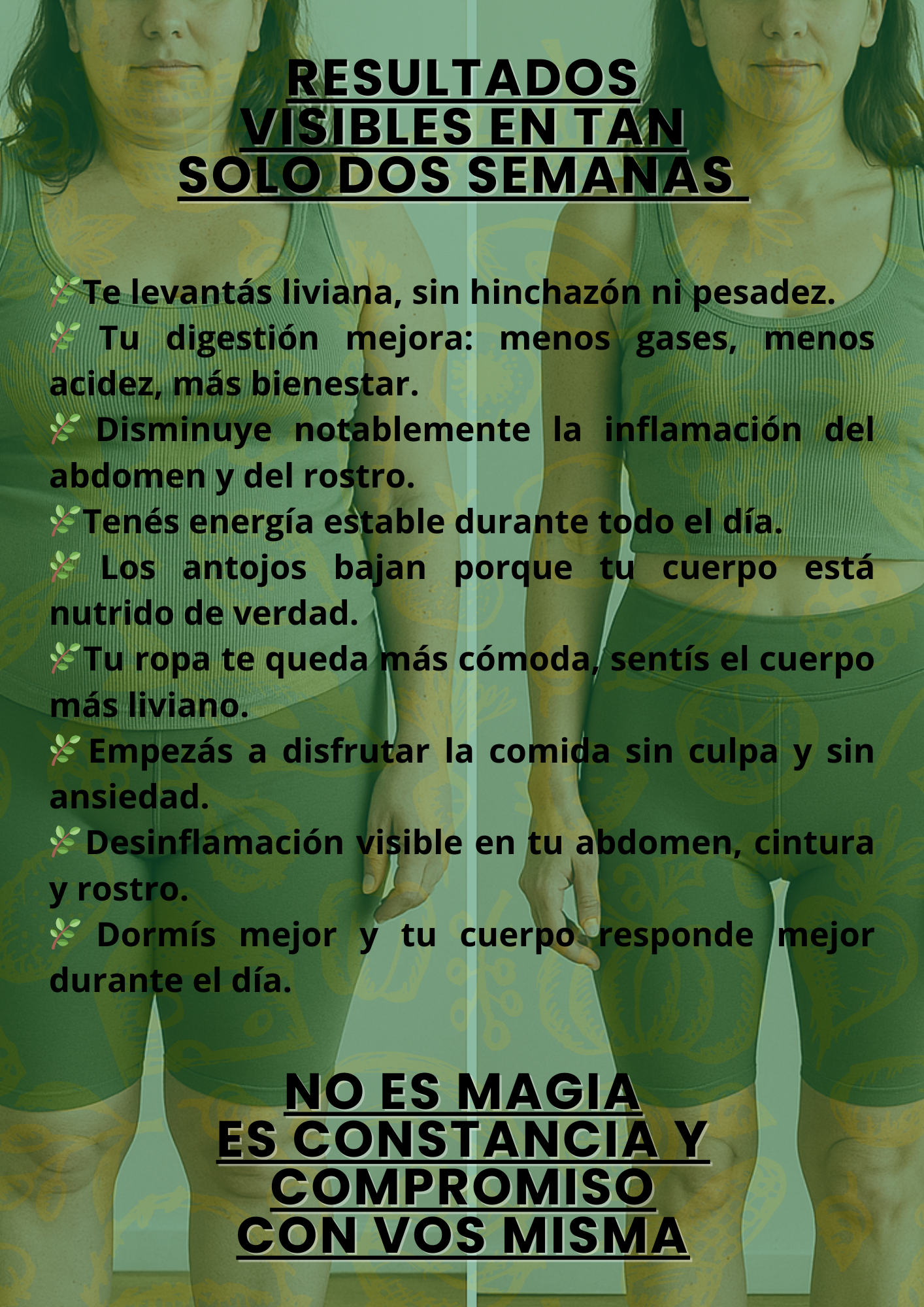 ⚡ Muchas personas notan más energía, mejor digestión y liviandad en las primeras 2 semanas aplicando las recetas